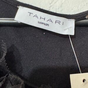 Tahari Plus Size Short Sleeve Black Ruffled Neckline Blouse Sz 3X