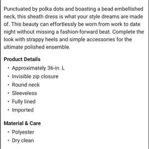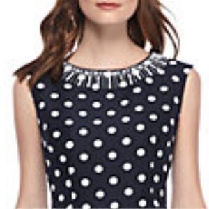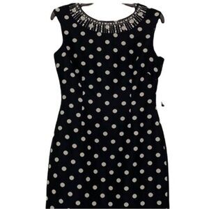 Tahari Arthur S Levine Navy White Dots Embellished Neck Sleeveless Dress