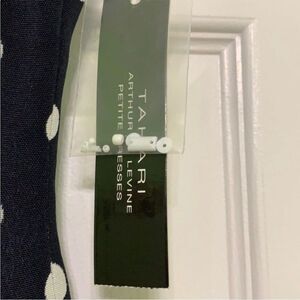 Tahari Polka Dot Embellished Neckline Sleeveless Dress size 4 Petite Navy Blue