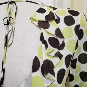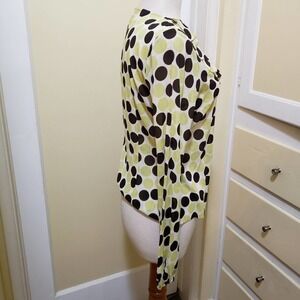 Tahari • Polka-Dot Blouse • Citron and Brown • Ruffles & Dots • Size 10