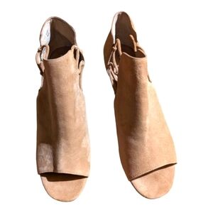 Tahari Post Tan Suede Peep Toe Booties Size 9.5 GUC