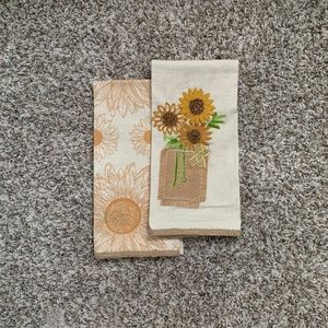 Item: Pretty Sunflower Kitchen Towels Flower Embroidery Southern Home Decor Set of 2