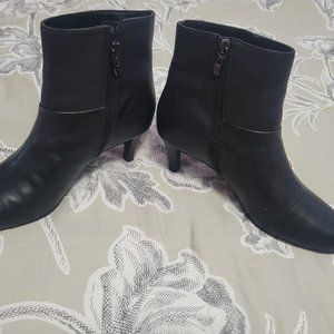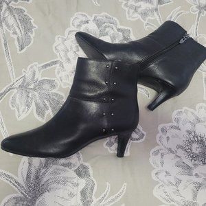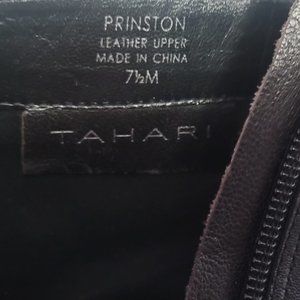 Tahari "Prinston" Real Black Leather Side Zip Bootie. Composite sole for added comfort. External heel measurement is roughly 2.5", inside is 2". Size 7.5 . Dress up or down, a great every day, every season addition to your wardrobe. Excellent condition. NO signs of wear- like new.