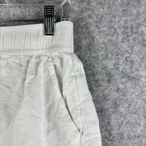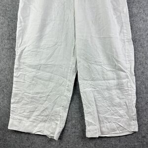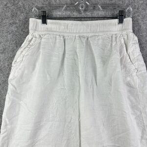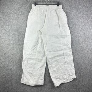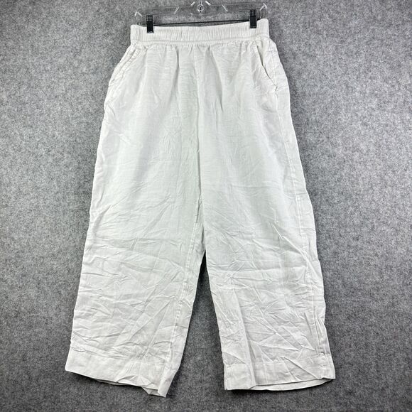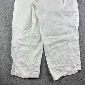 Tahari Pull On Linen Pants Womens M White Wide Leg Elastic Waist Pockets Beach