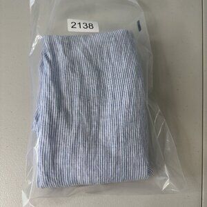 Tahari Pull on Pants Size S Wide Leg 100% Linen Cropped Blue White Stripe