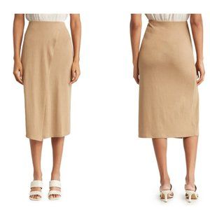 Tahari Pull-On Knit Jersey Midi Front Split Faux Wrap Skirt size Medium
