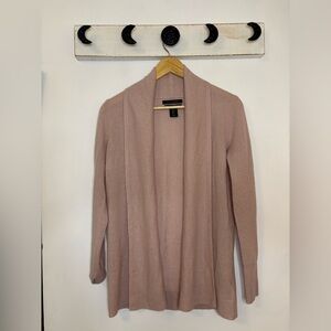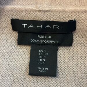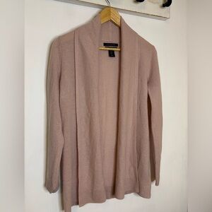 Tahari open front cardigan with roll over collar and trim detail. 100% cashmere, size small with an oversized fit will easily fit medium as well. Soft, casual, cozy, coastal, office,