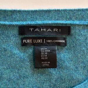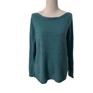 Tahari Pure Luxe Cashmere Sweater Womens Medium Lagoon Blue Boat Neck Soft