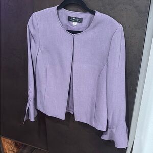 Tahari Purple Blazer Collarless Bell Sleeves