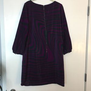 Tahari Purple & Gray Zebra Print Shift Dress | Long Sleeve Knee-Length Workwear