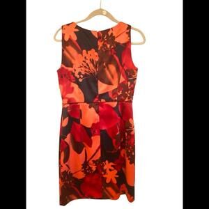 Tahari Red Floral Satin Sheath Pencil Knee Length Dress 10 ?