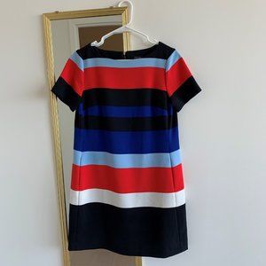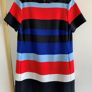 The dress is in good condition - there is one very small stain on the light blue stripe and is pictured