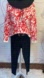 Stylish crew neck sweater with bold red floral pattern on white. Features a soft 50% rayon 29% polyester 21% nylon blend