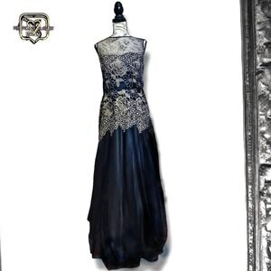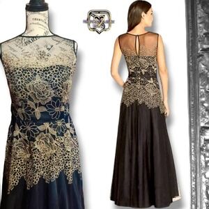 Tahari S. Levine Gold Embroidered Tulle Special Occasion Ballgown