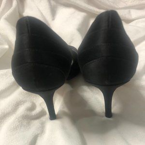Tahari black satin open toe pumps