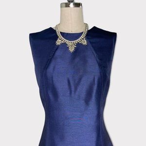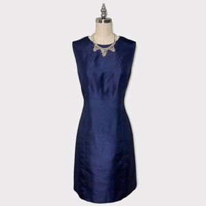 Tahari Satin Sheath Dress Navy Blue Size 4 Small