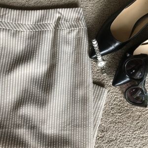 Tahari seer sucker skirt. Cream and white. Classic fit. Lined. Clean lines.