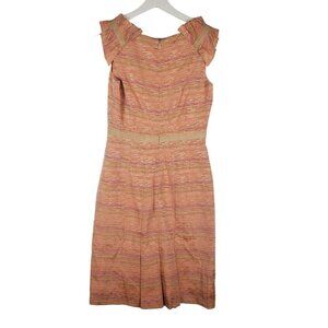 Tahari Sheath Dress Womens 2 Orange Sunset Back Zip Pleated Office Suits Sheen