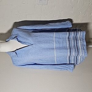 Tahari Shirt Pullover Popover Tunic Long Sleeve Roll Tab Linen Blue Stripes 1X