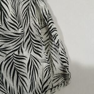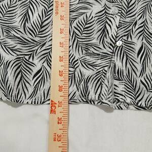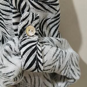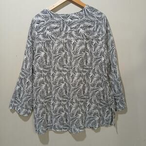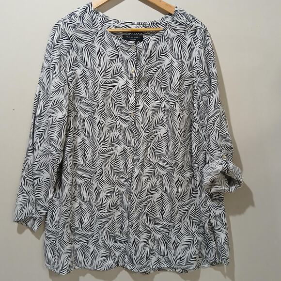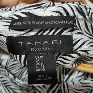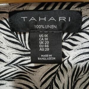 Tahari Shirt Womens 1X White Black Linen Leaf Print Button Front Tunic Top