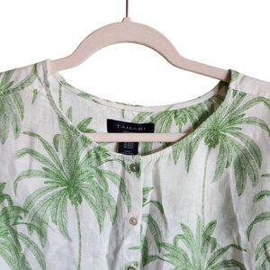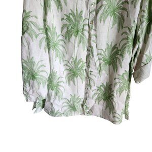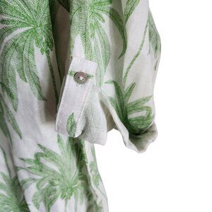 Tahari Shirt Women's 2XL XXL White Green 100% Linen Roll Tab Sleeve Top Blouse N