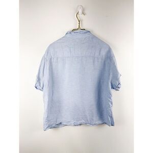 Tahari Shirt Womens Size Large Blue Button Up Linen Sleeveless V Neck. Condition is Pre-owned.