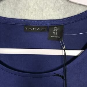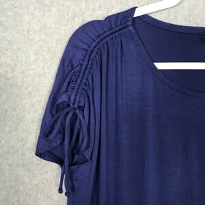 Tahari Shirt Womens Small Blue Ruched Short Sleeve Basic Everyday Soft Stretch Jersey