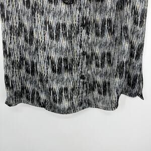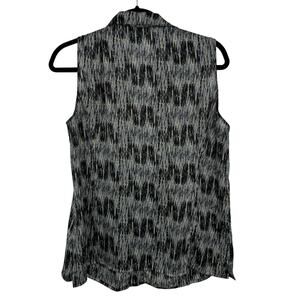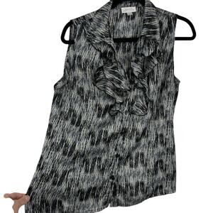 Tahari Silky Sleeveless Ruffle front Top size Large Black Multi Artsy Stripes