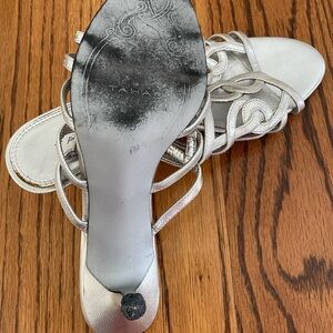 Tahari Silver Kitten Heels | Size 7M | Elegant Strappy Metallic Sandals