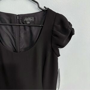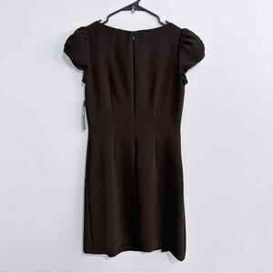 Tahari Size 2 Pleated Detail Puff Sleeves Black Juan Midi Dress NWT