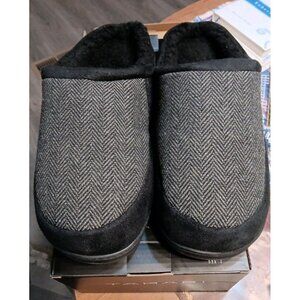 Tahari Size M -8/9 Mens Slippers Black W/Grey Herringbone Pattern Memory Foam