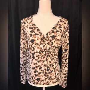 Tahari Size M, NWOT: Animal Print Wrap Top