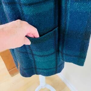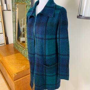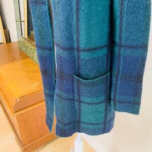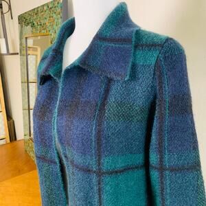 Tahari Size S Women's Open Front Cardigan Sweater Green Blue Tartan Plaid