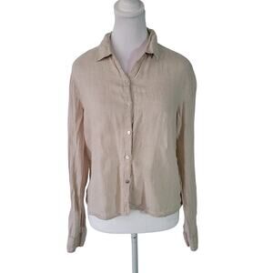 Tahari Size S 100% Linen Light Tan Long Sleeve Crop Button Up Top Collared