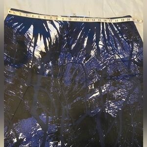 Tahari Skirt Midi Abstract Tropical White/Blue, Size 20