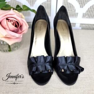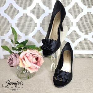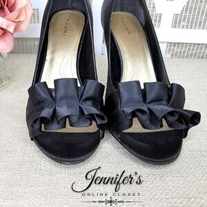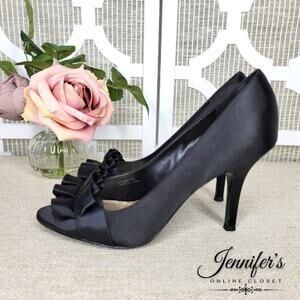 Tahari Sloan Black Satin Ribbon Peep Toe Heels