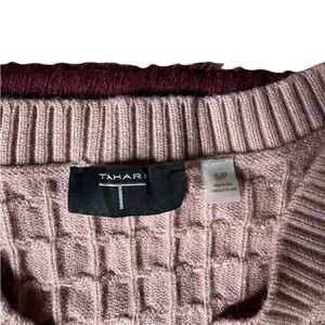 Tahari Soft Pink V-Neck Cable Knit Sweater