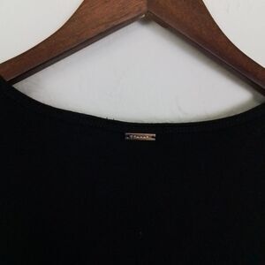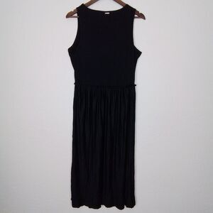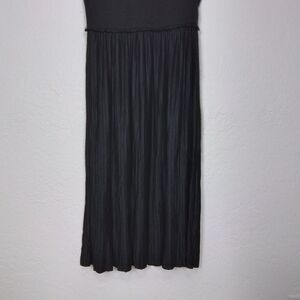 Tahari Solid Black Elastic Waist V-Neck Sleeveless Pleated Maxi Dress Size M