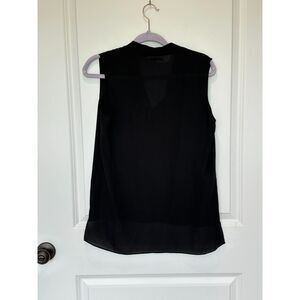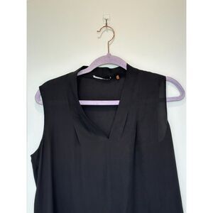 Tahari Split Neck Sleeveless Black Blouse Size Small