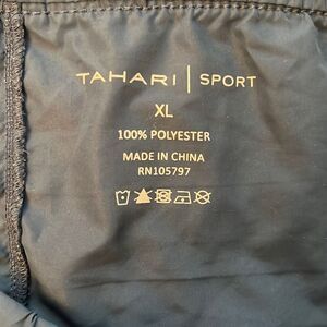 Step up your gym wardrobe with Tahari Sport's navy blue athletic workout shorts. They're as stylish as they are functional; made with a lightweight material that moves as you do. The mesh side panels make for a unique design feature and add breathability to keep you cool during your workout. Plus, the elastic waist ensures a comfortable fit no matter your activity level. And let's not forget about that mesh trim detail on the hem, adding an extra hint of sporty style.
