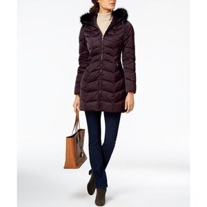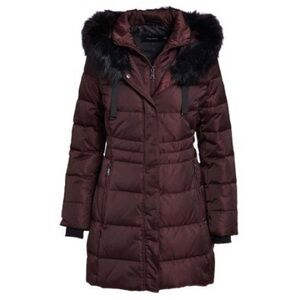 Tahari Stephanie Faux Fur Trim Puffer Down Coat XS