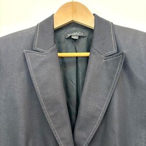Tahari Stretch Denim Blazer Dark Wash Two Button Indigo Blue Academia Office 6