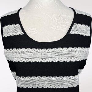Tahari Striped Knit Tank Top Black White Sleeveless Size 8