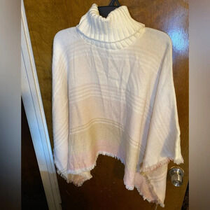 Tahari Striped Woven Fringe Trimmed Poncho - One Size Fits Most - NWT