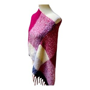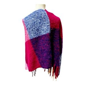 Tahari Super Soft Fringed Plaid Poncho O/S Womens Multicolor Shawl Layering