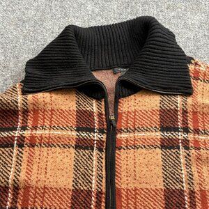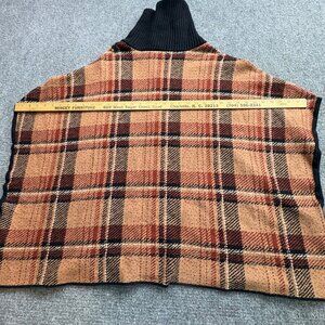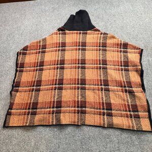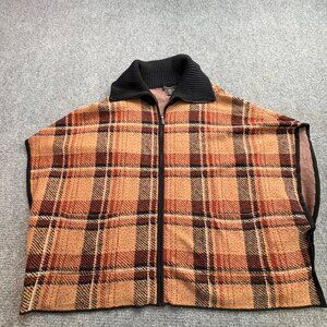 Tahari Sweater Cape Womens L XL Brown Plaid Dolman Sleeve Blanket Poncho Zip Up