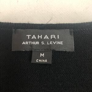 Tahari women's black sweater dress. Pullover. Round neck. Long sleeves. Unlined. Stretch. Midi length. In good used condition. No stains, tears or holes.