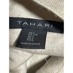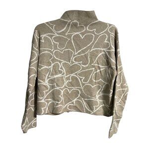 Tahari Sweater Womens Large Beige White Heart Print Mock Neck Lightweight
