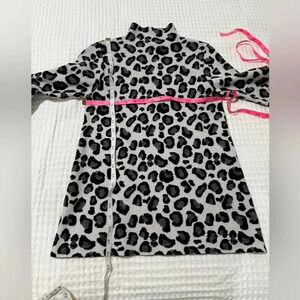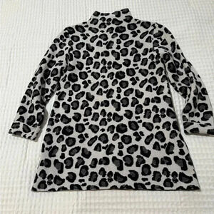 Tahari Sweater Womens Small White Black Animal Print Viscose Mock Neck Pullover