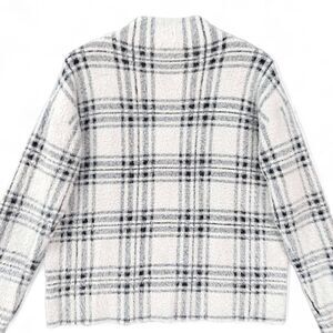 Tahari Sweater Womens Sz M White Gray Plaid Eyelash Knit Mock Neck Pullover Soft